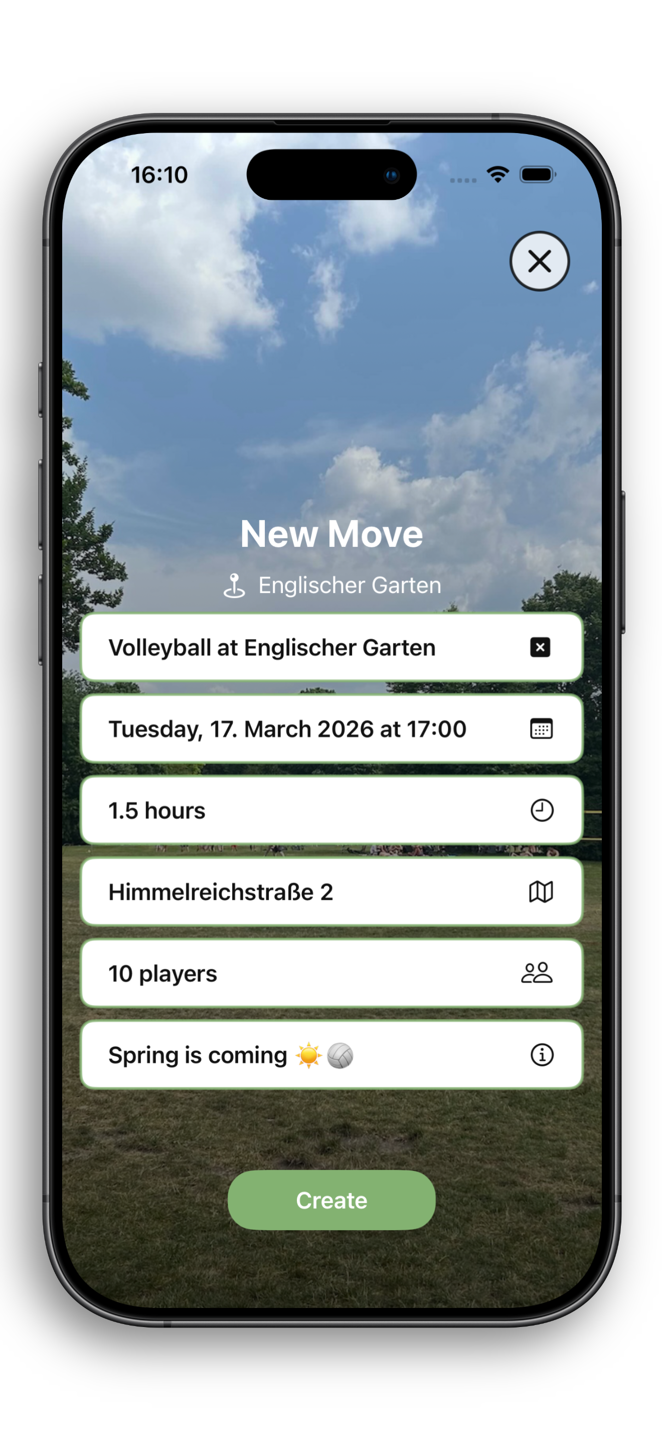 Check out availability, define your event’s timing and duration, and respect capacity limits. You can join upcoming moves or create your own